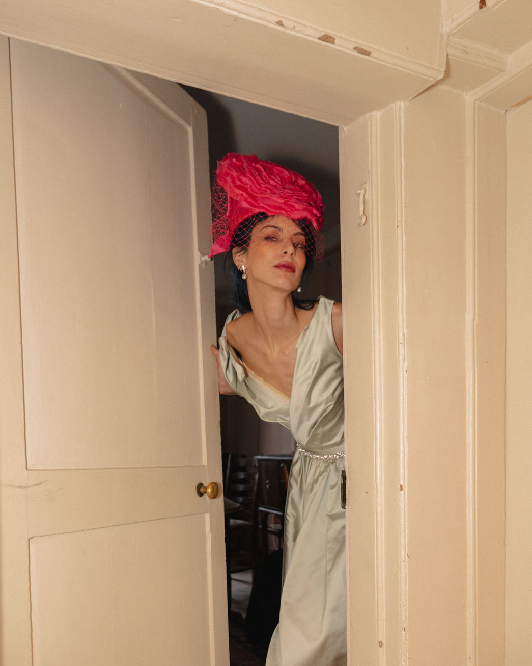 Bespoke Fucsia Pink Rose millinery with veiling detail.